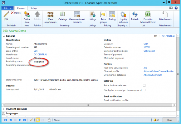 This is requirements of Dynamics AX 2012 R3. With Dynamics 365 for Operation there is no publishing feature since the channel is automatically published when it’s fully configured. Still, the channel must be in a published state to be able to send the product and channel information to the online channel.